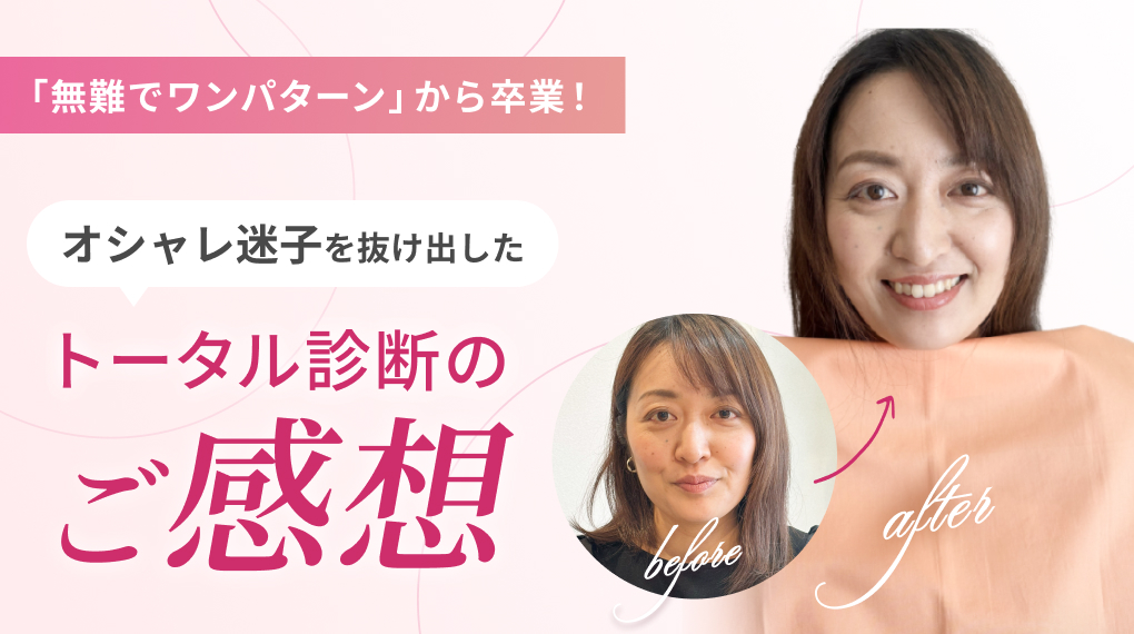 ファッションもメイクもワンパターンで、何が似合うのか分からず…。子育てに追われ、自分に手間をかけられず、気づけば20代の頃の服やコスメばかり。そろそろアップデートしなきゃ!と思い、診断を受けました。